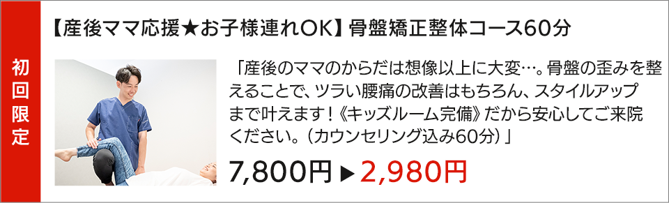 | 骨盤矯正・腰痛整体 | 6,600円 |