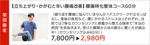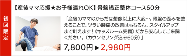 | 骨盤矯正・腰痛整体 | 6,600円 |
