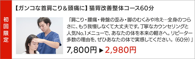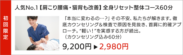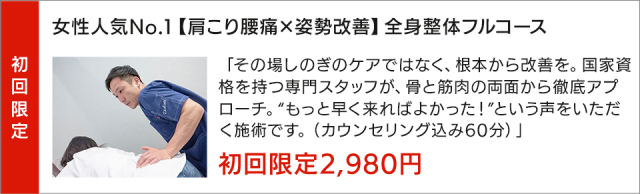 | 姿勢矯正・肩こり整体 | 6,600円 |